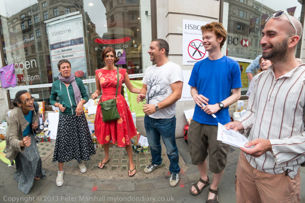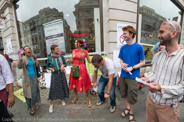 ![]() ![]() ![]() ![]() ![]() ![]() ![]() It was time to move to another HSBC branc, and people picked up the food and posters ![]() and walked towards Oxford Circus ![]() ![]() |
