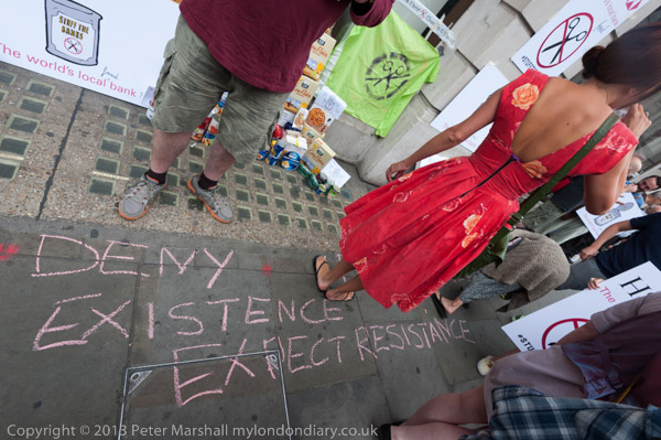 ![]() People shouted some slogans ![]() ![]() ![]() and clapped and sang about HSBC encouraging customers to use tax havens and dodge paying tax ![]() ![]() '#Stuffthebanks' HSBC (heart) Tax Havens ![]() 'Deny Existence Expect Resistance; ![]() |