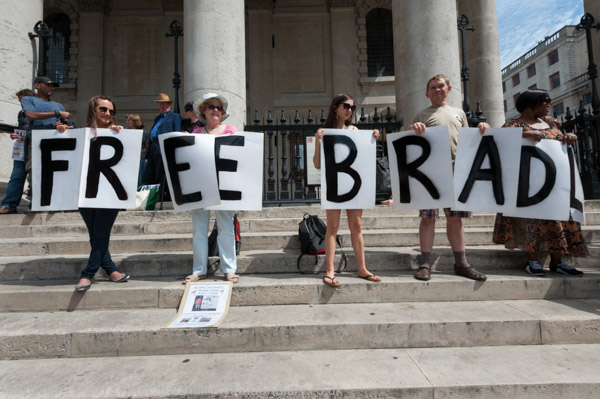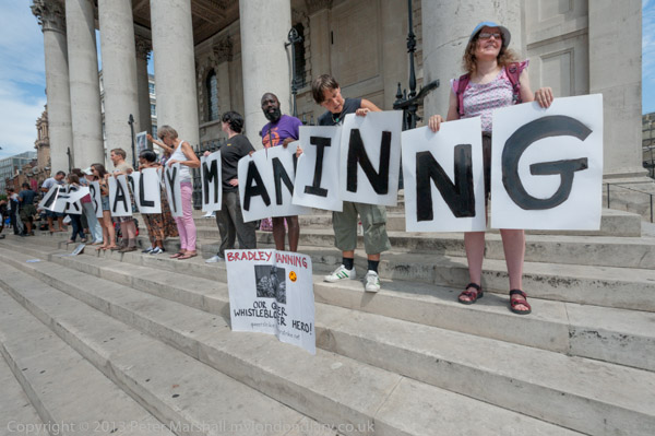 Bradley Manning Support Network International Day of Action - in London a vigil on the steps of