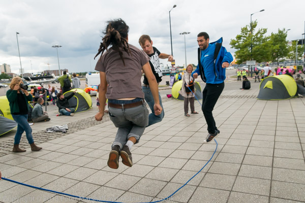 Protesters occupy themselves and photographers with skipping
