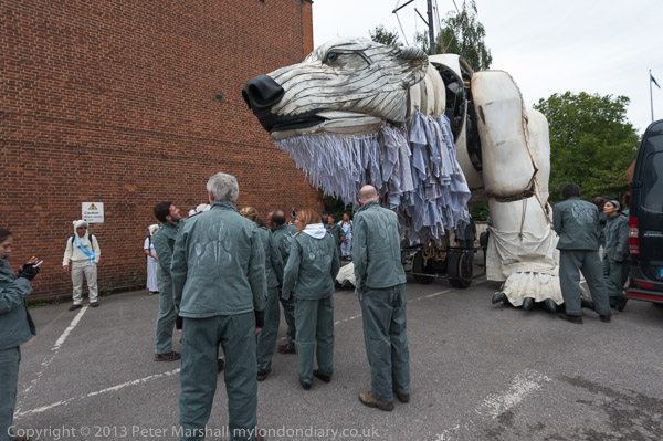 Finaly we followed some stewards to the bear's lair, in a yard next to the railway, where final preparations