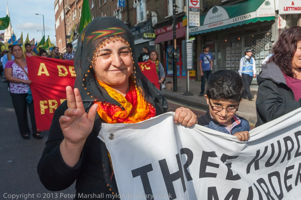 The banner with pictures of 'Three Kurdish Politicians Murdered in Paris' - three women activists shot in the PKK offices