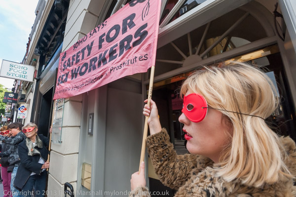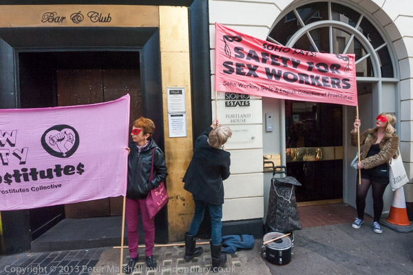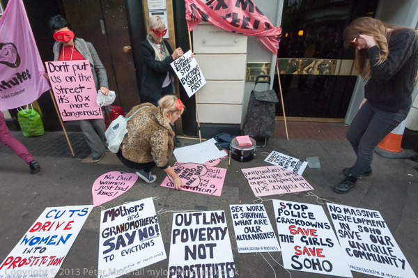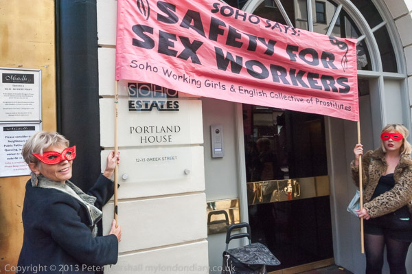 'Soho Working Girls' banner at Soho Estates in Greek St