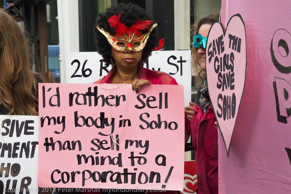 A speaker from the Soho Society gave her support to the protest and one of the traditional aspects of Soho