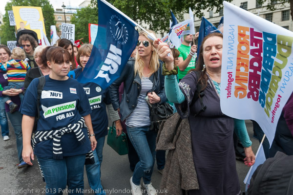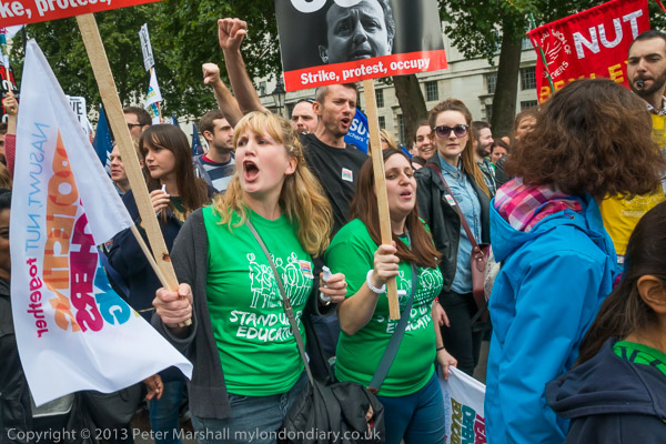 There was quite a lot of shouting as the NASUWT and NUT marchers passed Downing St
