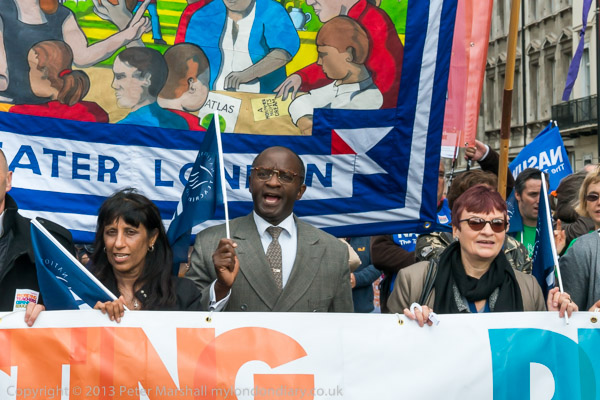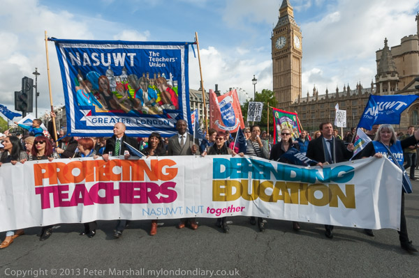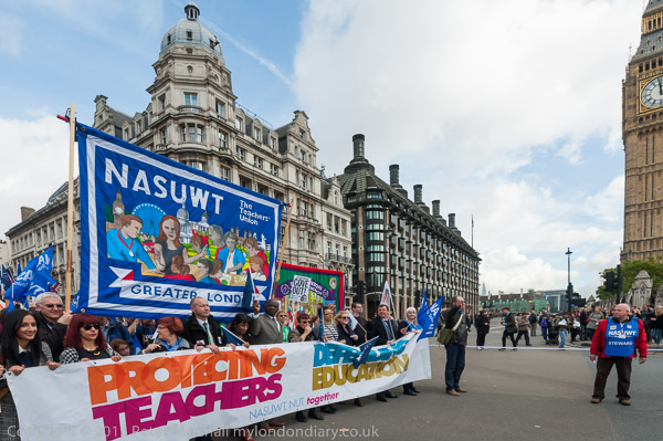 The NASUWT Greater London Banner was just behind the main banner in front of Parliament
