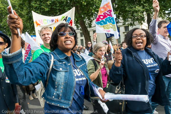 I met the march at Downing St on its way from Malet St to a rally in Marsham St