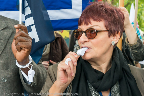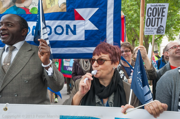 Christine Blower, NUT General Secretary, blows her whistle