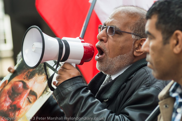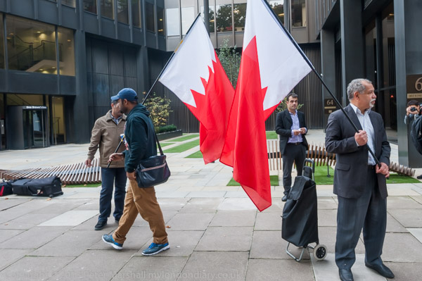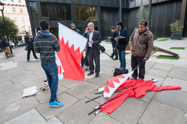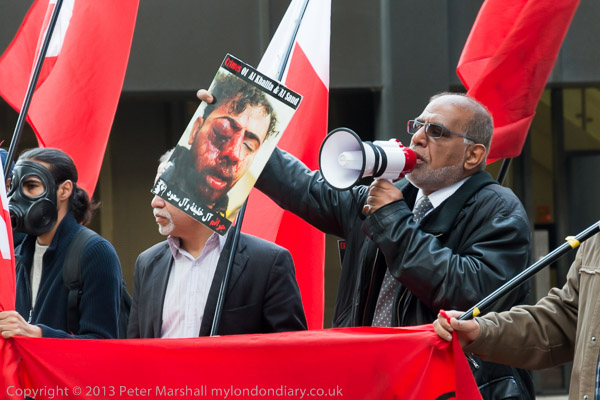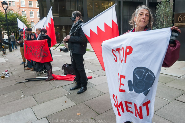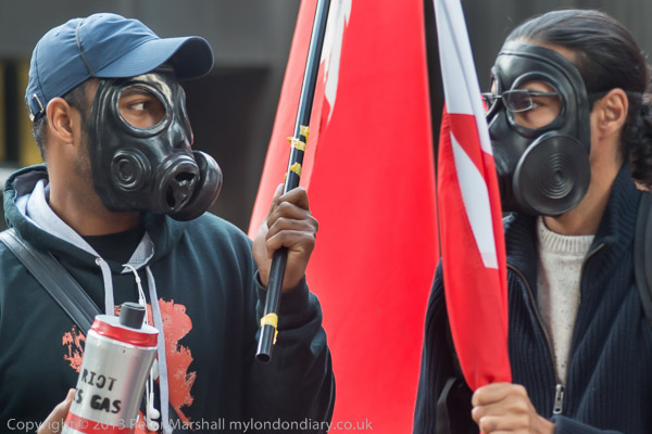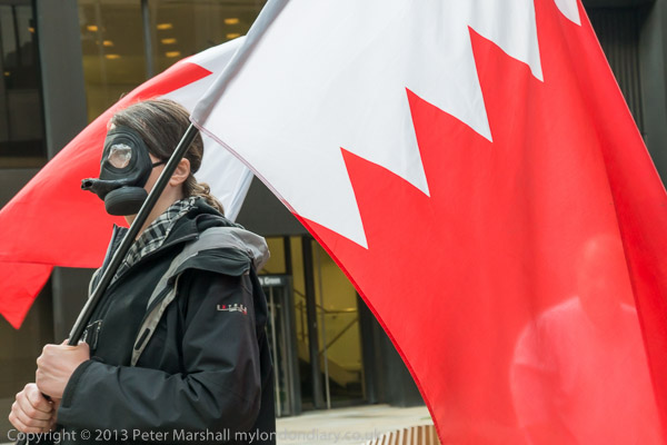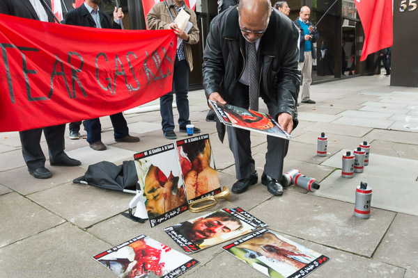 The protesters brought horrific images of people killed and maimed in tear gas attacks in Bahrain