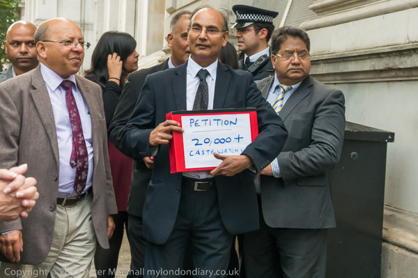 The marchers reach Downing St and move onto the pavement opposite for a rally