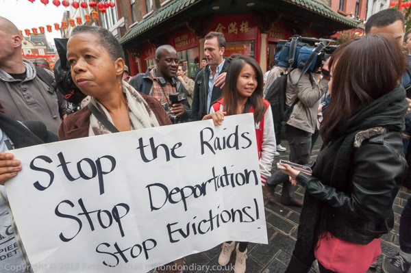 A 'NO ENTRY UKBA fishing raids' notice is put up in a restuarant window
