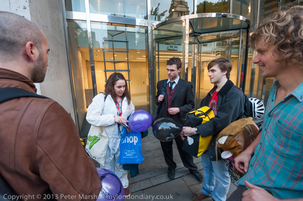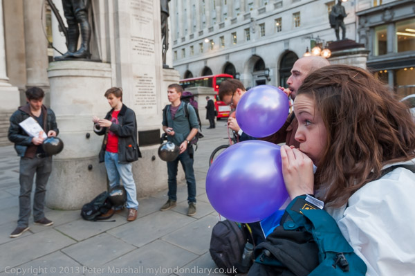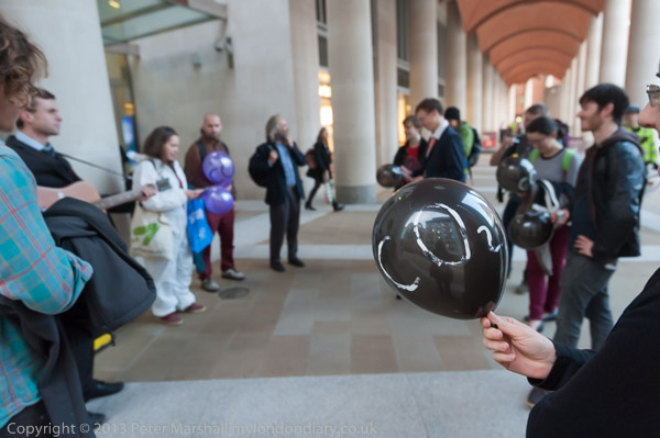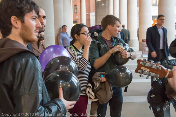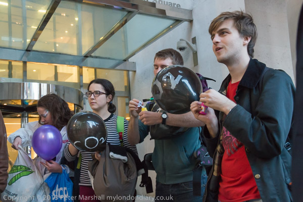 People filled black (and purple) balloons to represnt carbon dioxide. They had intended them all to be black