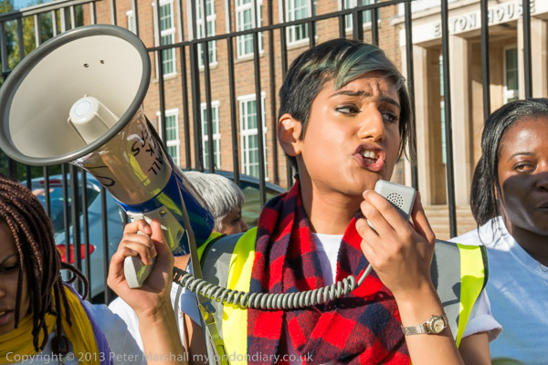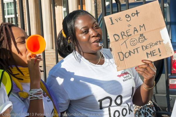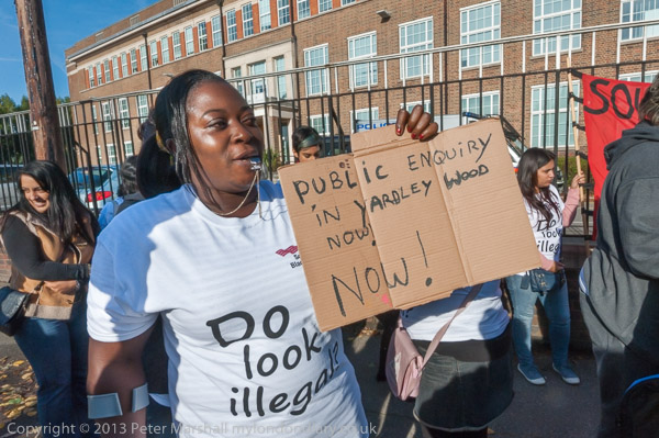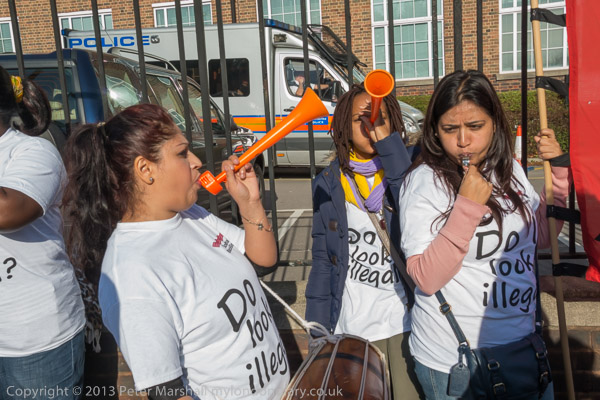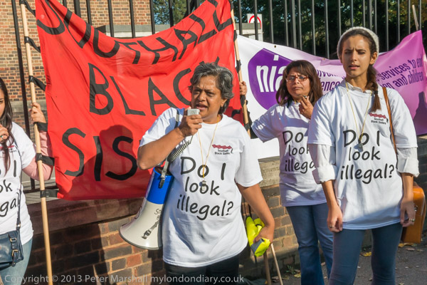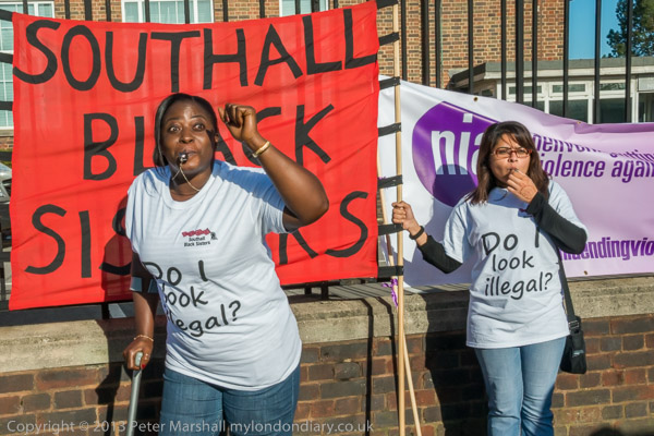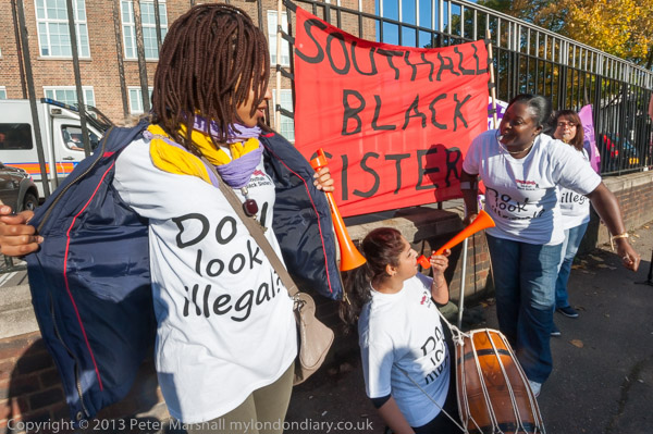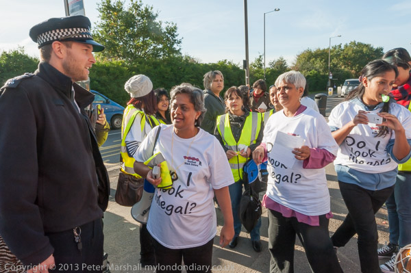 Most of the protesters were wearing Southall Black Sisters t-shirts with the message 'Do I look illegal?'