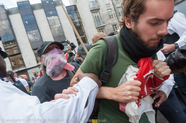 The police attempted to stop some of the protesters, though other police were shouting 'Let them through'