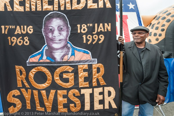 There were large banners for some of those killed, including Roger Sylvester, killed when restrained by police in 1999