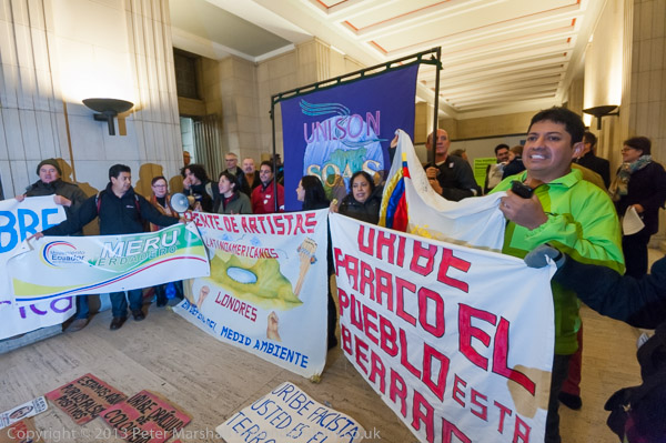 Many groups supported the protest, including Polo Democrático-UK, Colombia Solidarity Campaign,