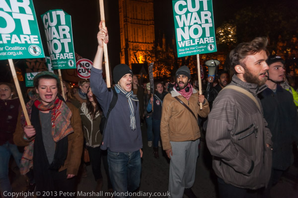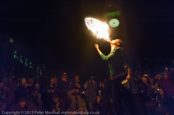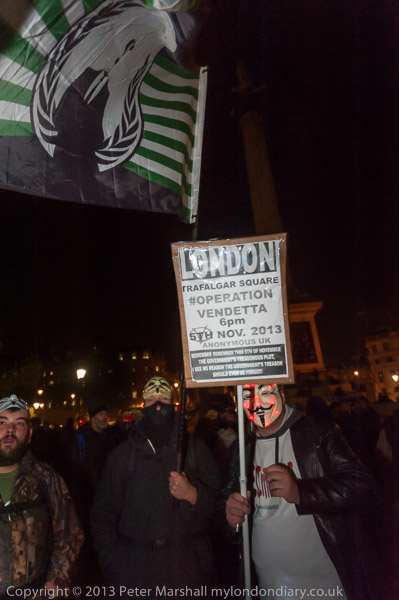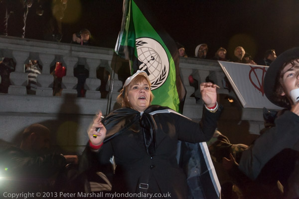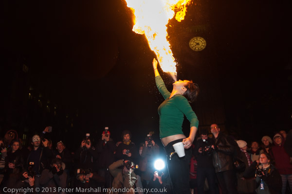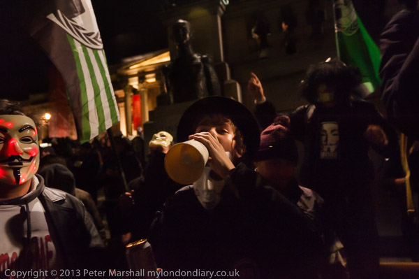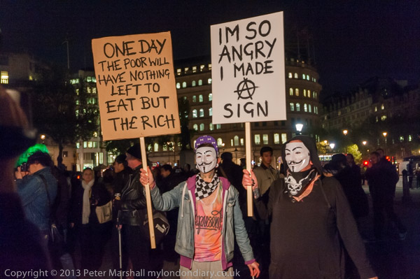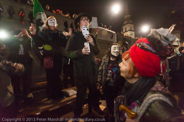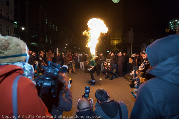Bonfire of Austerity protesters come to join the Anon party in Parliament Square