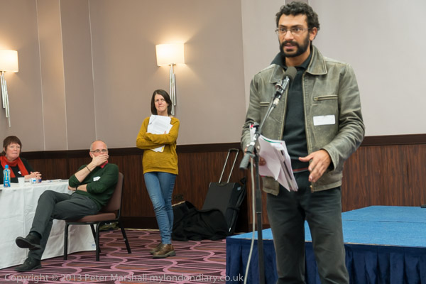 Using these pictures:Members of Left Unity may use up to six of the pictures in this report on the Left Unity Founding Conference on non-commercial personal blogs so long as each is attributed '© 2013 Peter Marshall http://mylondondiary.co.uk' (you may replace the web address with a link if preferred.) A non-commercial blog is one without advertising or sales links and which is not produced as a part of your or someone else's employment. For use on other blogs and web sites please contact me (see above) and a fee may be required. ![]() Joseph Kisolo-Ssonto ![]() ![]() ![]() Tom Walker ![]() Naomi Wimborne-Idriss ![]() ![]() ![]() Richard Rieser ![]() ![]() |