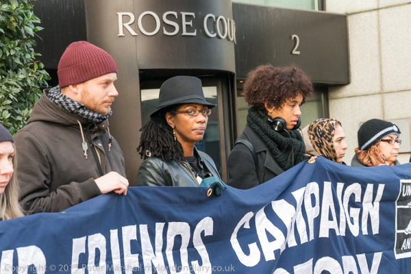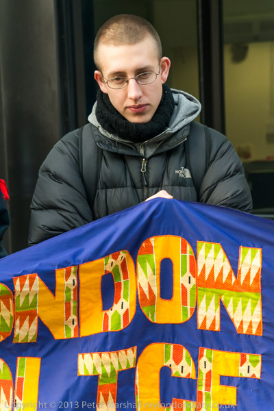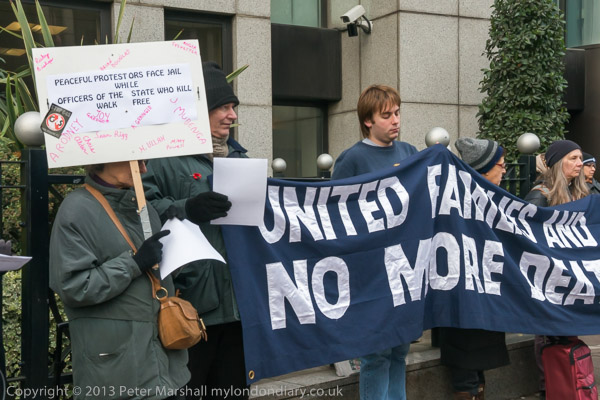 The long 'United Families and Friends Campaign' banner calls for 'No More Deaths in Custody'