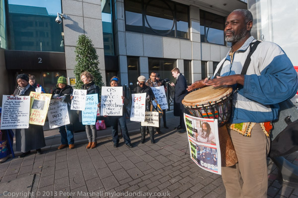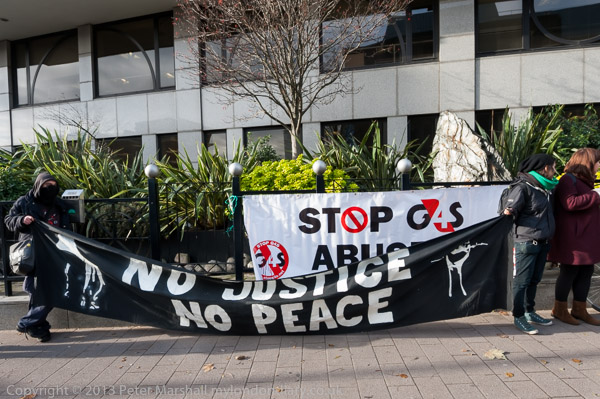 Banners frin 'London Against Police Violence' and Pan-Afrikan Society Community Forum'