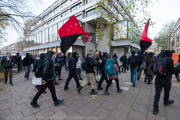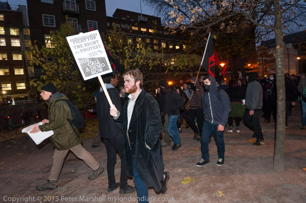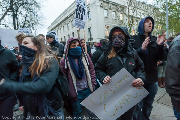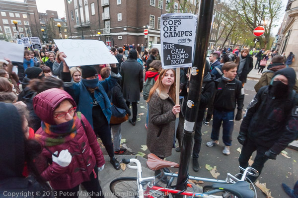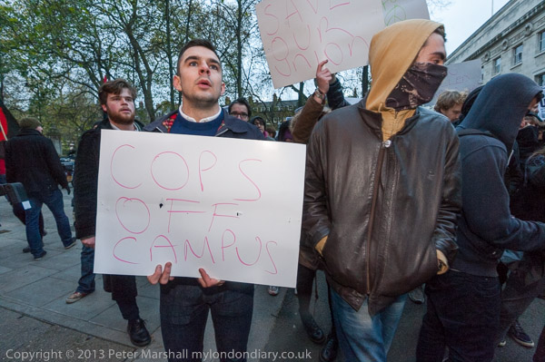 The students marched up Gower St, where a group of around 20 police jogged up and then stopped on the
