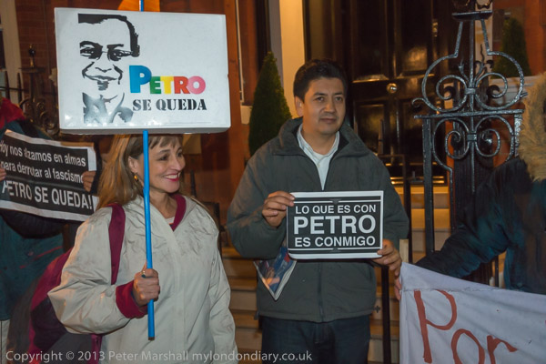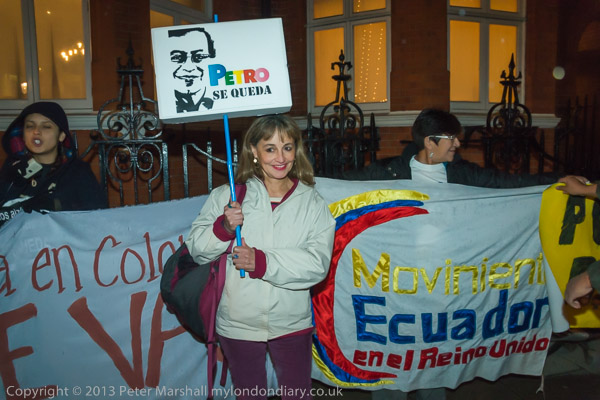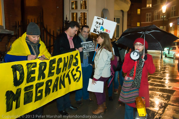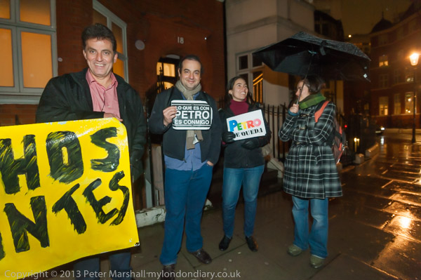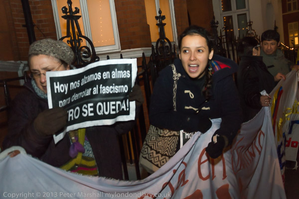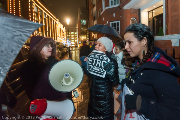 The protest continued and the rain gradually got heavier. The embassy is just a few yards from Harrods