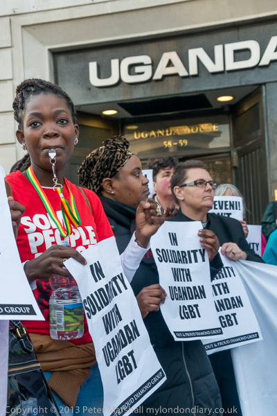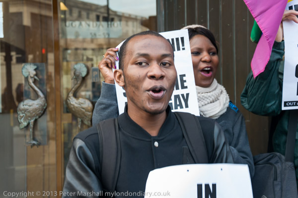 Protesters in the doorway of Uganda House