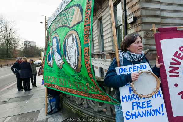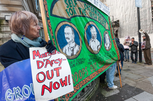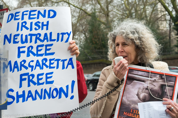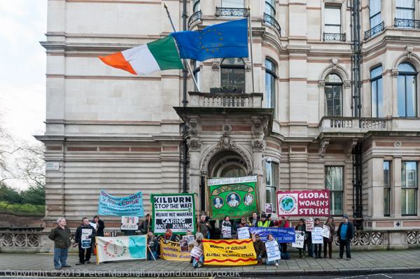 Before the protest finished the protesters lined up outside the Irish embassy for a group picture