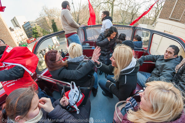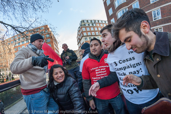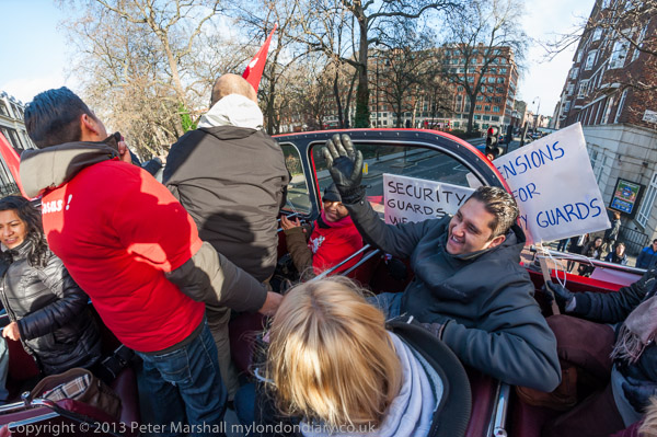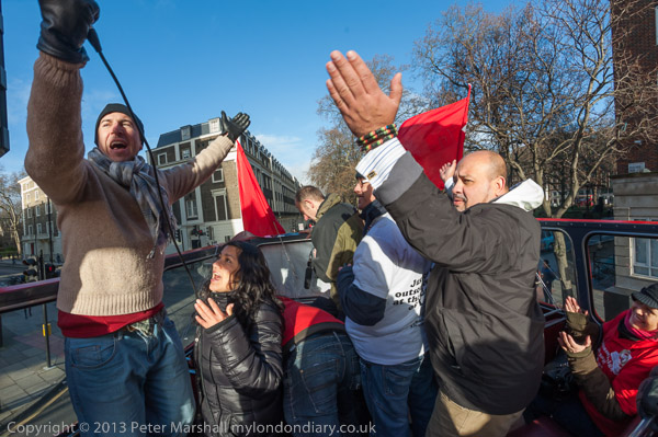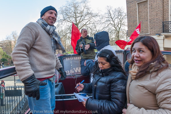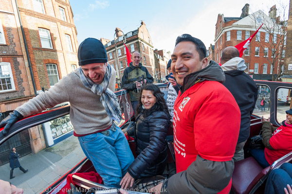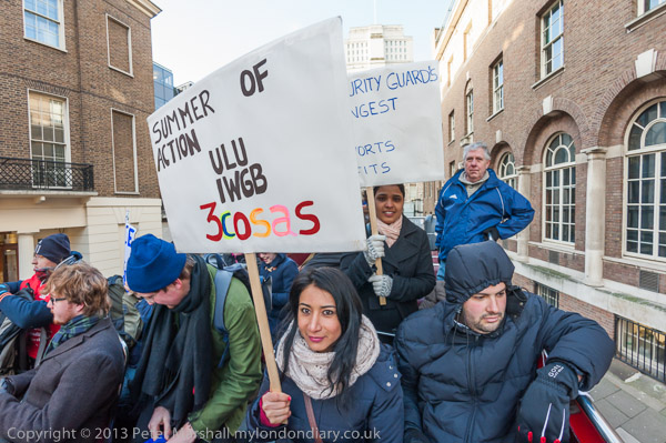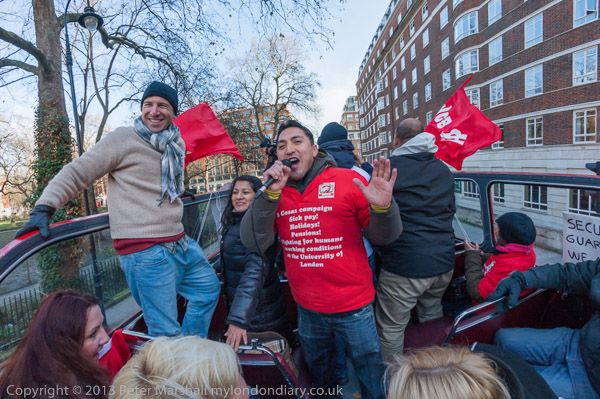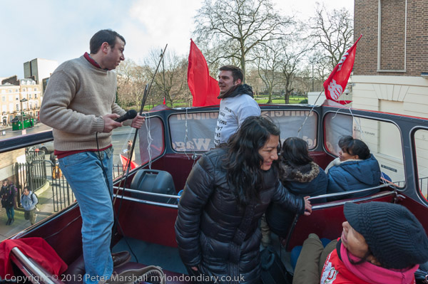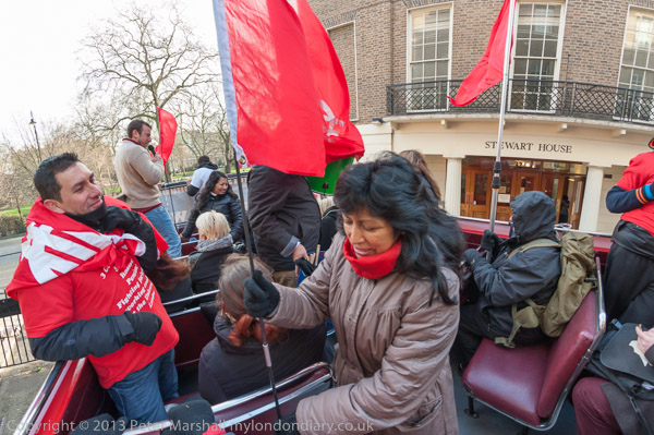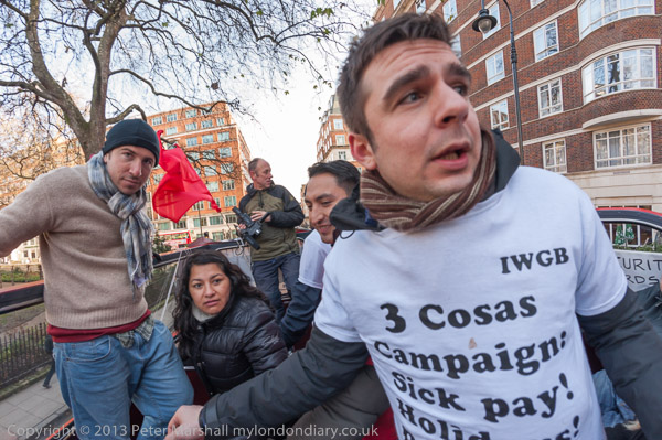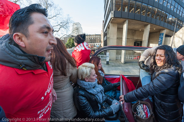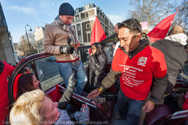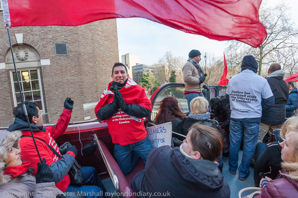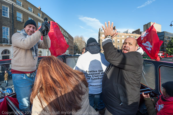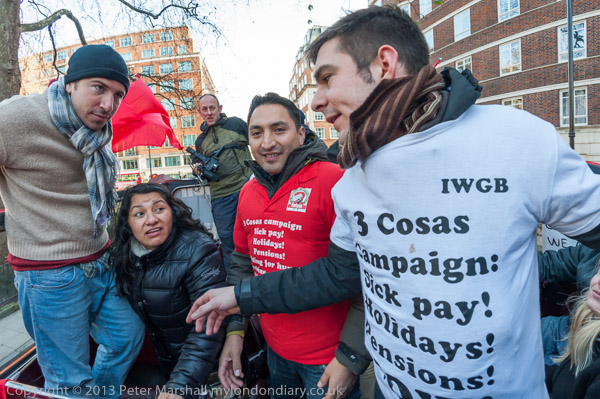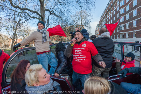 '3 Cosas' Strike IWGB Battle BusSenate House to Parliament Square, London. Tue 28 Jan 2014 |