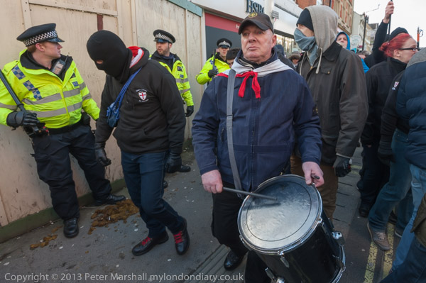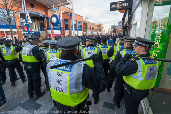 The EDL walk along the High Street after police have pushed back protesters and local people
