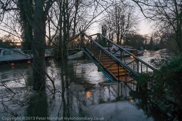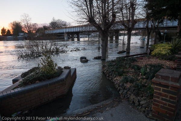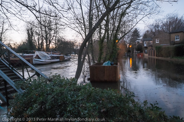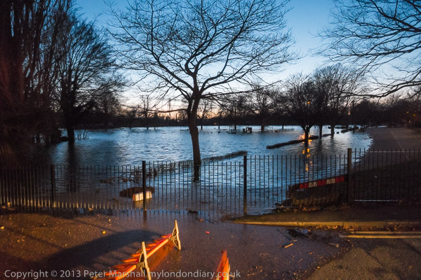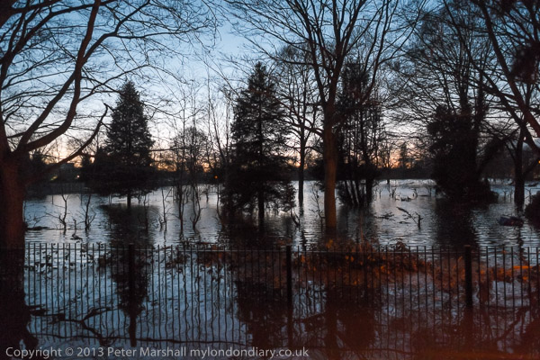 It was well after sunset before I could go out again. The Jubilee Gardens were almost completely flooded
