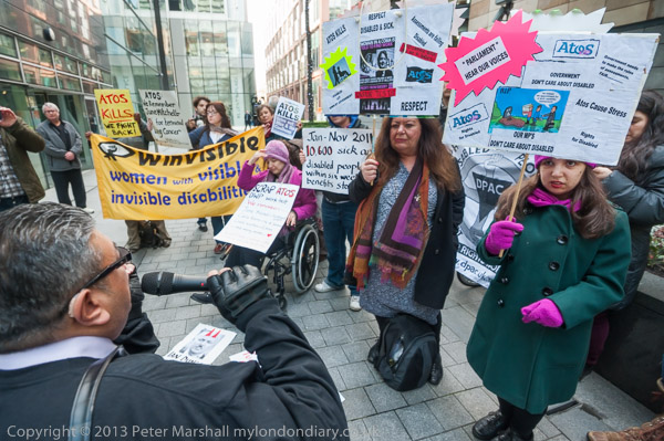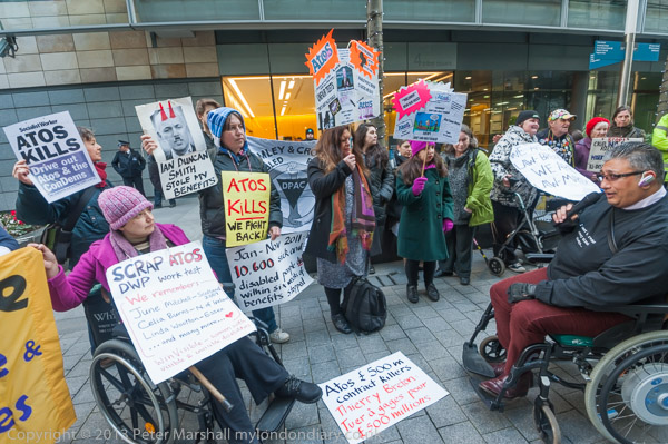 At this point I left the protest outside the Atos offices to cover events elsewhere in London, returning later in the day