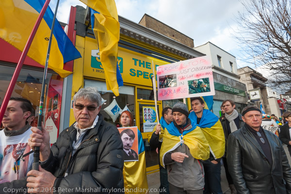 After an hour opposite the Russian consulate (its flag visible in the picture) the Ukrainians formed up to march