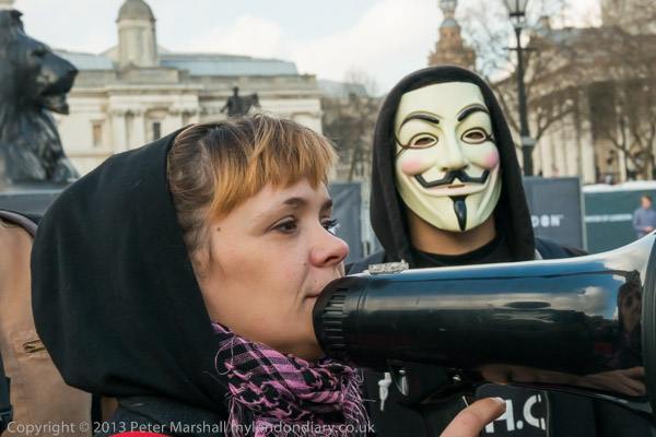 Trafalgar Square & Ecuadorian embassy. Sat 1 Mar 2014