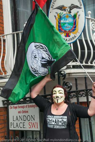 In front of the Ecuadorian embassy calling for Assage to be allowed to leave and go to Ecuador