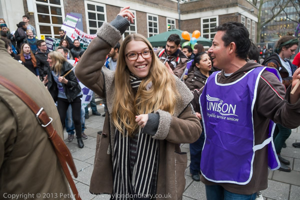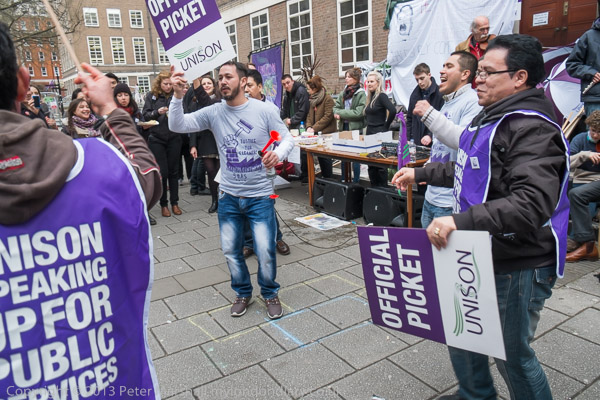 After the speeches, a Colombian band came to play and the cleaners and their supporters started to dance