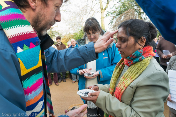 and poured onto the charocal which will be used to make crosses on the foreheads of those taking part