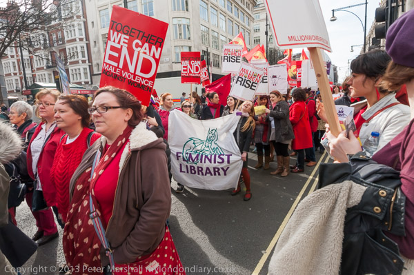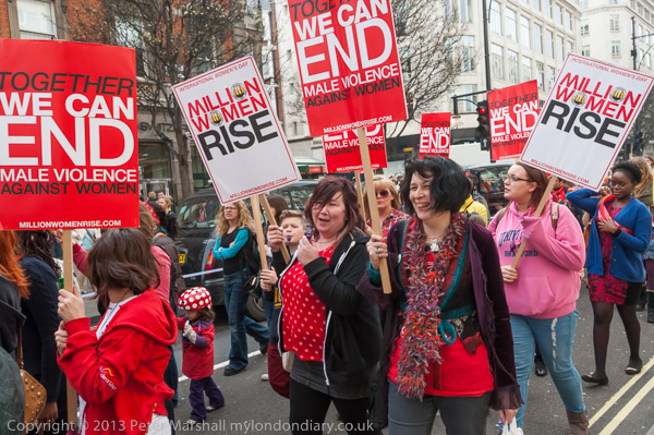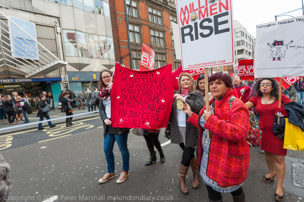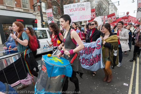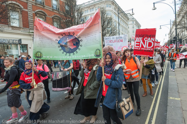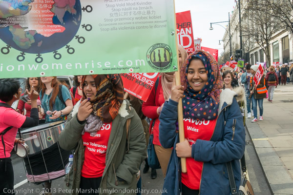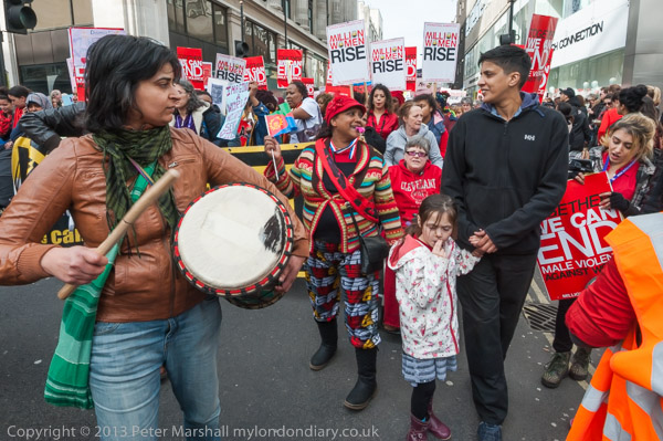 The march moves off with a drummer and Sabrina Qureshi founder and co-ordinator of Million Women Rise
