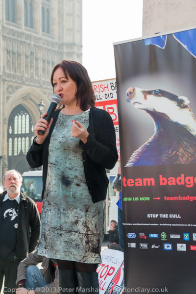 A badger threatens Kerry McCarthy, Labour MP for Bristol East,