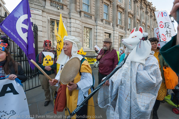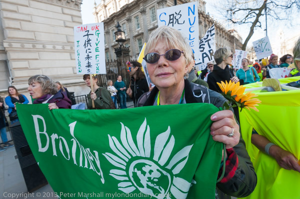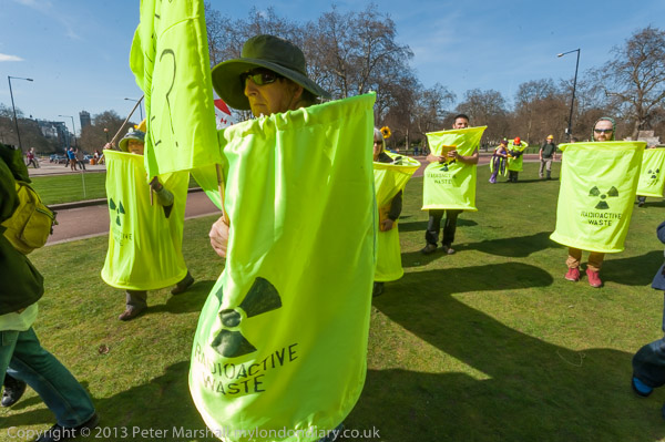 'How About A Nuclear Waste Dump Here?' at Downing St. The protesters went on to a rally opposite Parliament