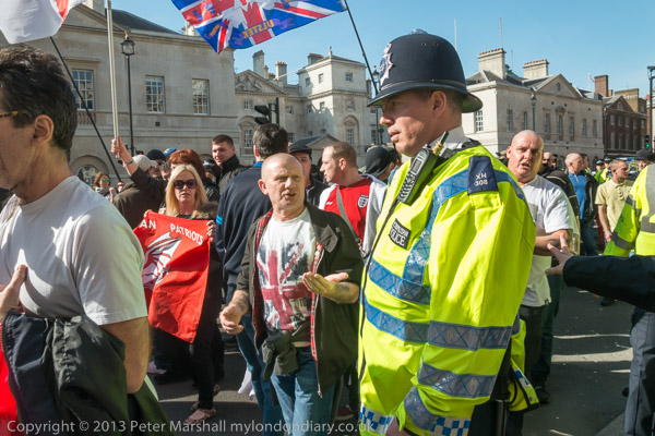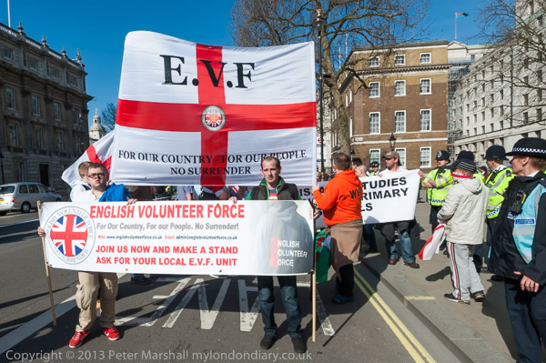 EVF make an attempt to rush towards the counter protesters but police and stewards hold them back