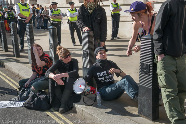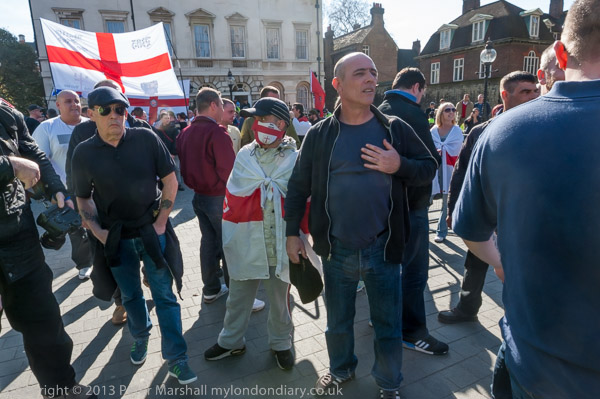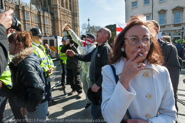 As I left, a small group of antifacists who had evaded the police were walking towards the EVF protest