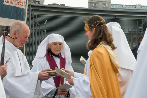 And takes the sword to the chief druid, his status marked by the three bars of the awen on his headdress