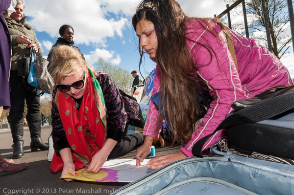 Maya Evans and another of 'The Activettes' put a kite together