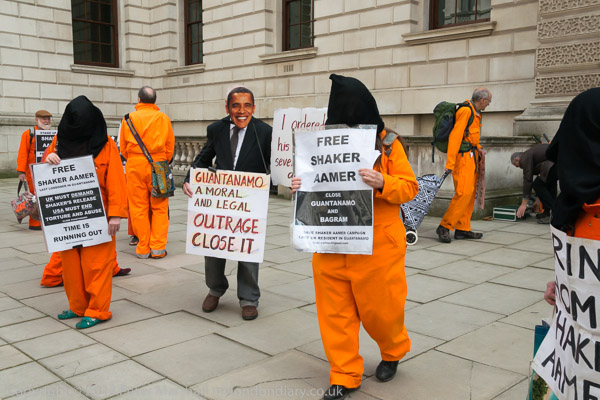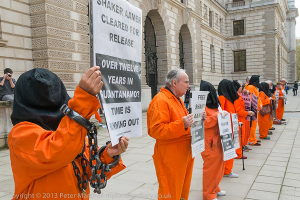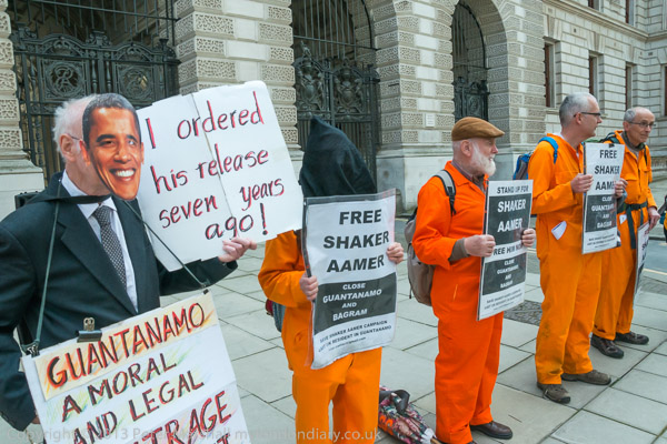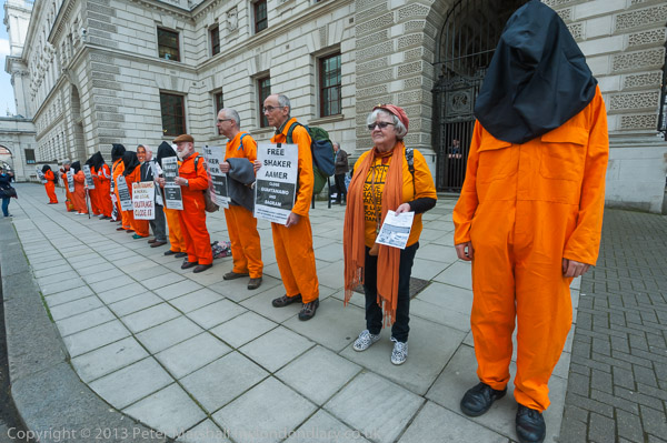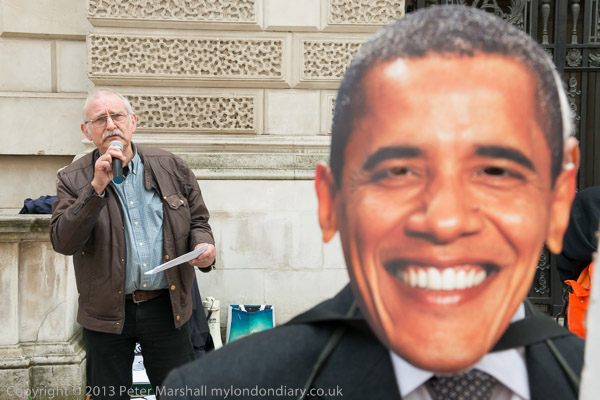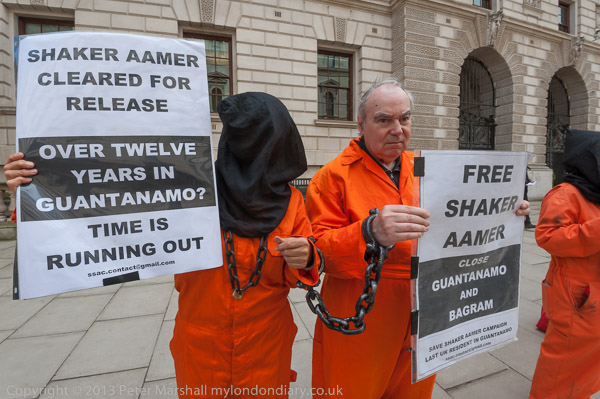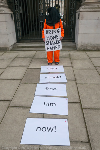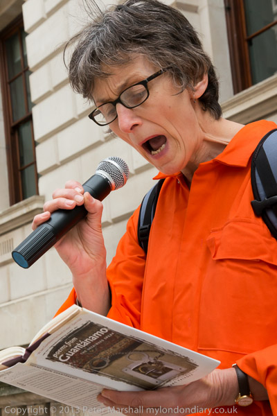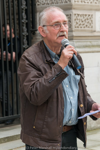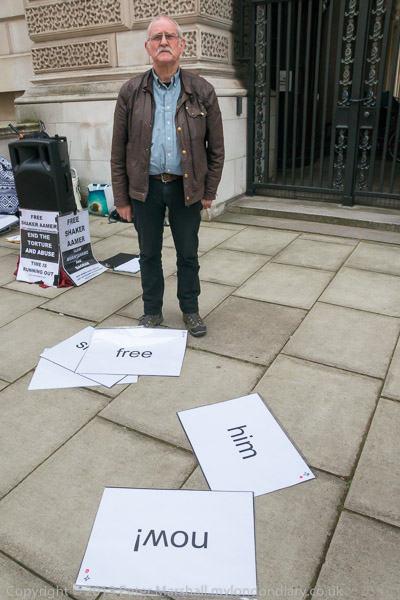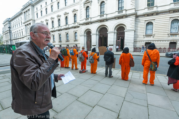 Ray Silk speaking in front of the Foreign Office, calling on William Hague to urgently press the case for release of Shaker Aamer