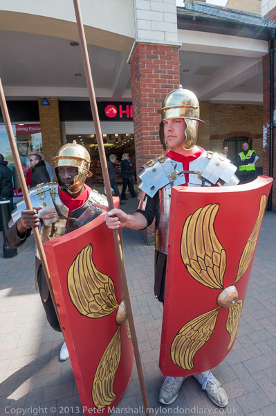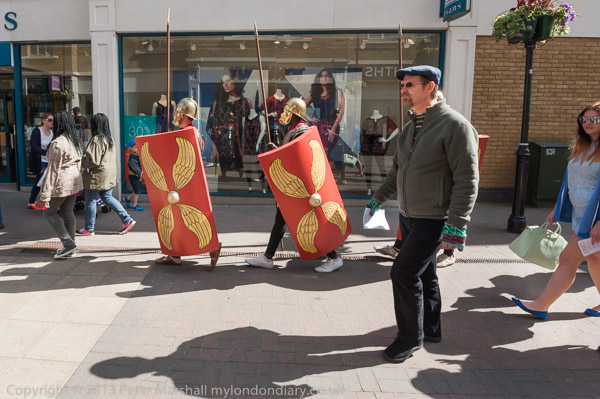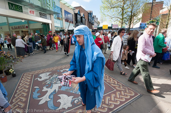 Walking past the mosaic in Staines High St