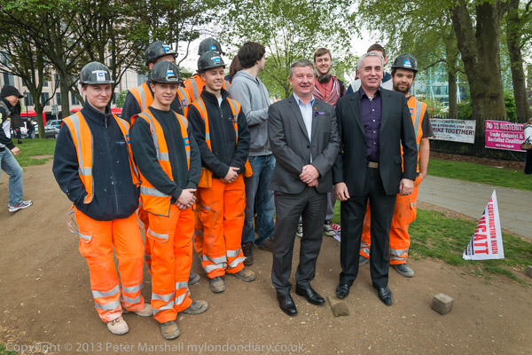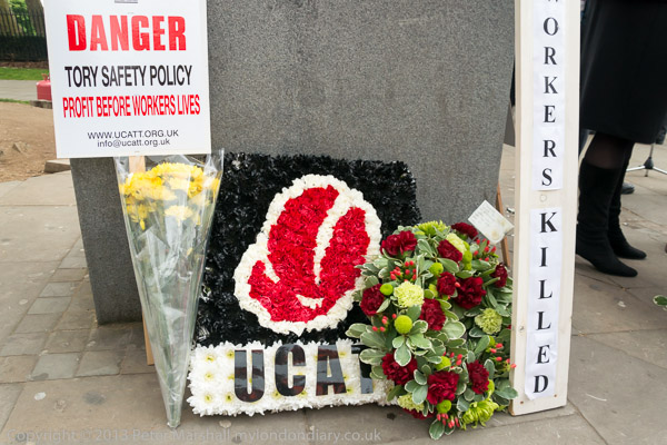 The UCATT wreath is laid at the base of the statue of the Building Worker