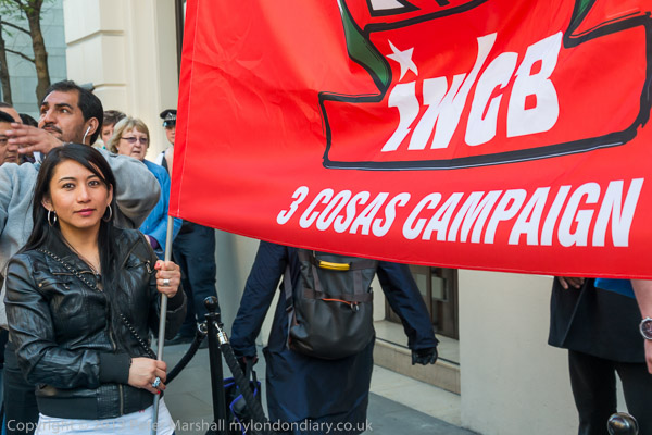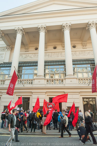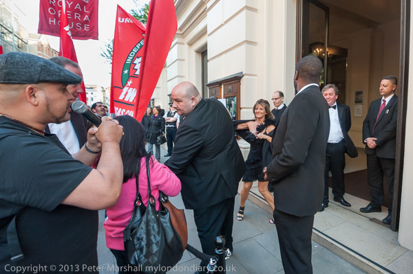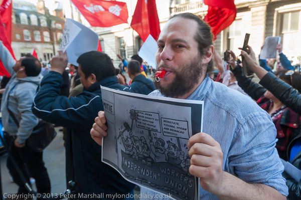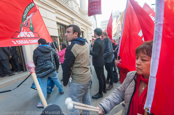 IWGB protesters make a lot of noise outside the Royal Opera House, Covent Garden