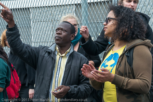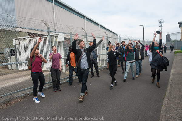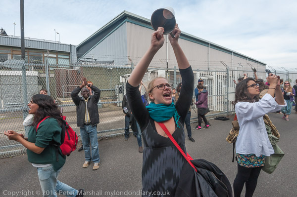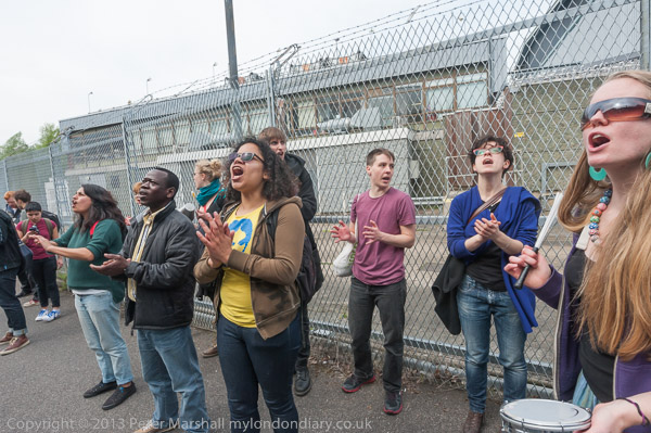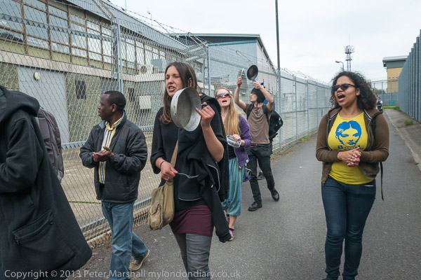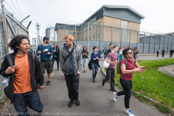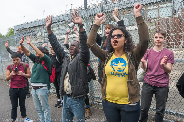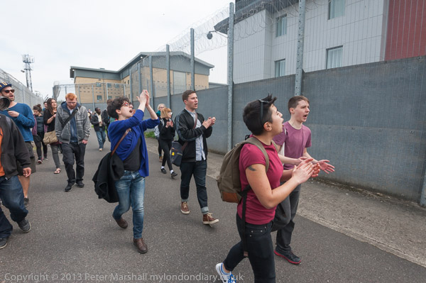 People waved at the prisoners, and some were able to speak to those inside Colnbrook and Harmondsworth
