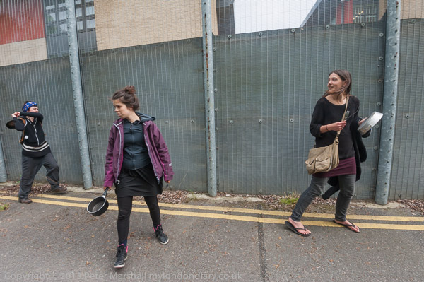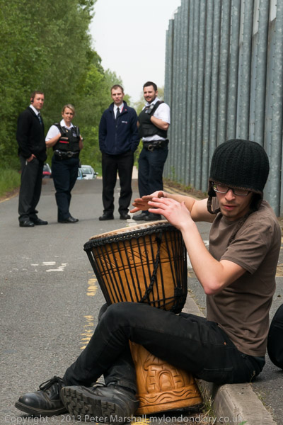 In the corner behind the protesters are the kennels for the airport police dogs, who were apparently disturbed
